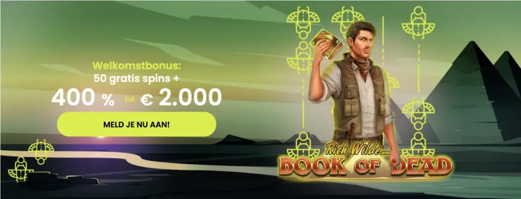 | 1e Storting | 400% | Tot €2.000 | 50 spins | €20 |